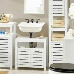 SoBuy Under Sink Cabinet Bathroom Vanity Unit Bathroom Storage Cabinet With Sliding Door,BZR61-W