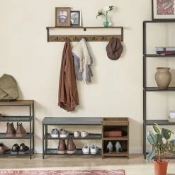 SoBuy Wall Coat Rack Wall Shelf Wall Hanging Shelf Hook Rack,FHK27-N