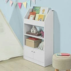 SoBuy White Wood Children‘s Storage Display Bookcase Cabinet KMB11-W