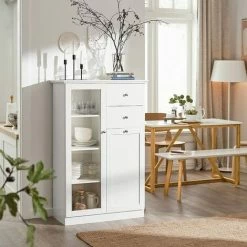 SoBuy Sideboard With Glass Sliding Door Storage Cabinet Cupboard,FSB46-W