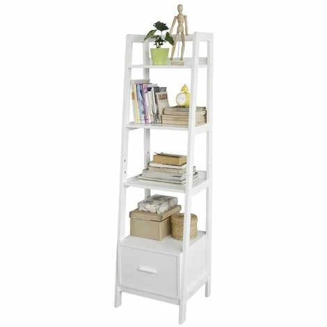 About this item-SoBuy 4-Tiers Ladder Storage Bookcases and Shelving Unit with Drawer ,FRG116-K-W