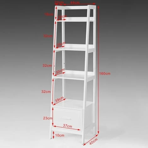 - Modern ladder style shelf with 1 drawer and 4 shelves is great for value.