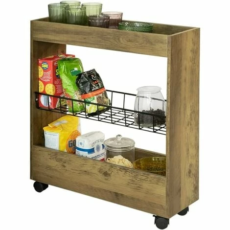 Versatile and practical. It can be used in the bathroom as a toilet paper roll holder, or in the kitchen as a serving trolley, or in the living room as a side table.