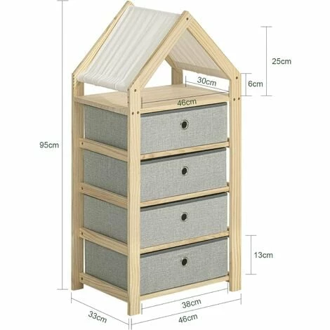 4 removable fabric drawers, giving you more space to put your household items, children toys or office supplies. The high-quality fabric is breathable, non-toxic and wear-resistant.