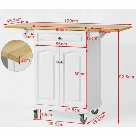 - Two extra folding side boards that are 2cm thick will add an extra 60cm to the length of the trolley.