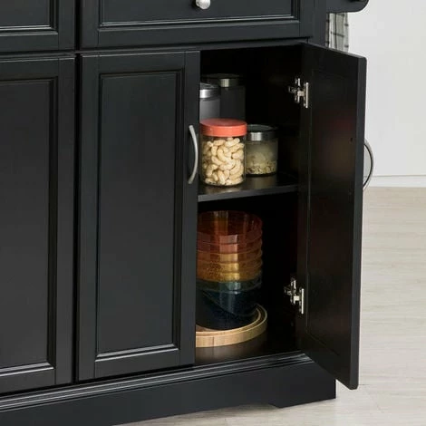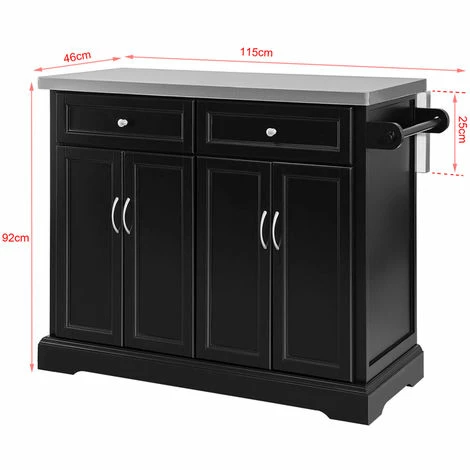 - This Trolley Kitchen Island has a stainless steel worktop with widened board, 2 drawers, 2 cupboards with internal adjustable shelf, 1 towel rack and 4 wheels.