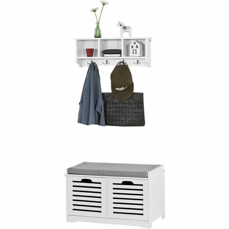 - A very practical unit that comprises of a shoe storage bench and a wall coat rack.