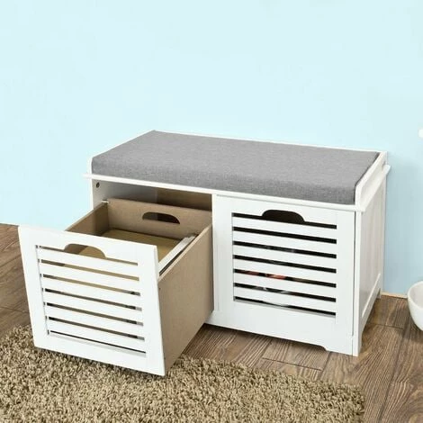 FSR23-K-W,Storage Bench with 2 Drawers & Removable Seat Cushion