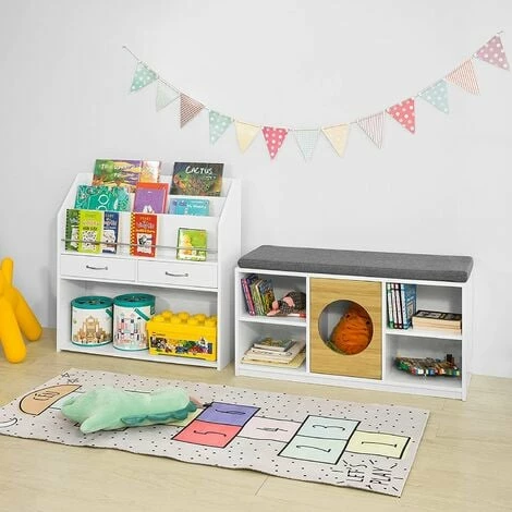 4 open shelves and a storage compartment in the middle provide plenty of storage space for shoes, toys, books, etc.