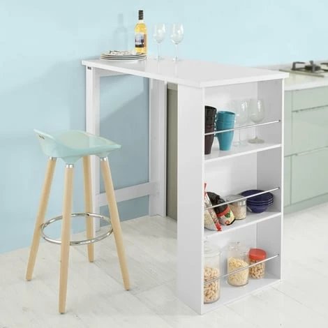 The sturdy MDF table surface, it is easy to keep clean.With 3 tiers storage rack, provides extra storage space.The stainless steel bars prevent things from falling.