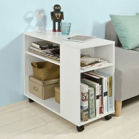 - Side/End table completes with two shelves and four castors (two with brake).