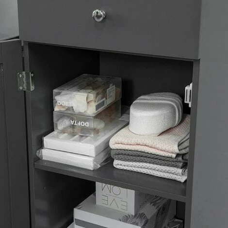 Bathroom Storage Cabinet in grey color creates a distinctive and modern atmosphere and adds more storage space to your bathroom.
