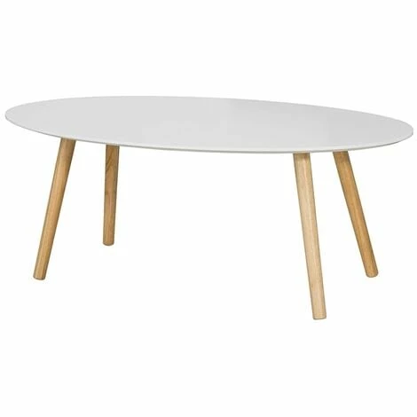 Smooth top made of E1 standard MDF in white lacquer. 4 solid legs made of rubber wood with varnished coating.